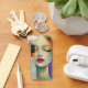 Dieses atemberaubende abstrakte Frauenportrait verbindet Surrealismus mit lebendigen Farbblocktechniken. Ihr ruhiger Ausdruck, geschlossene Augen und fette rote Lippen sind durch eine Mischung geometrischer Formen und malerischer Texturen gerahmt. Ein modernes, avantgardistisches Design, das eine Touch moderner Eleganz ergänzt.