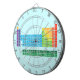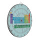 Dartboard, der Periodensystem der Elemente kennzeichnet, wenn jede Elementgruppe in den Regenbogenfarben markiert ist.