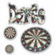 Das Bild zeigt ein Dartbild-Logo und Dartboards