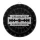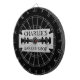 Barbershop-Dartboard mit Rasierklingen-Design. Die Dekoration ist für den männlichen Friseur angepasst. Stilvolles Geschenk für den Friseursalon-Besitzer. Machen Sie Ihren eigenen trendigen Friseur für Chef, Mitarbeiter, Mitarbeiter etc. präsent. Einzigartige Geschenkideen aus der Haarstylistik. Personalisiert mit Ihrem eigenen Firmennamen oder Firmenlogo. Maskuline Dekoration mit scharfer Kante. Schwarz und Weiß.