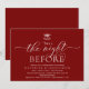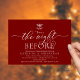 Moderne Romantische Kalligraphie, burgundisches Rotmotiv, Mistletoe mit Hochzeitsglocken, Einladungskarte für das Hochzeitsessen der Probe (mit Kartentitel: 'Das war die Nacht zuvor). Es ist ideal für Ihre Hochzeit Probe Dinner feiern Party, bevor Sie Ihren besten Tag. Fügen Sie Ihre Daten in passender schwarzer Schriftart / Schrift hinzu. #TeeshaDerrick
