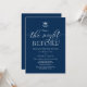Moderne Romantische Kalligraphie, marineblaue Regelung, Mistletoe mit Hochzeitsglocken, Einladungskarte für das Hochzeitsessen Probe (mit Kartentitel: Vornacht). Es ist ideal für Ihre Hochzeit Probe Dinner feiern Party, bevor Sie Ihren besten Tag. Fügen Sie Ihre Daten in passender schwarzer Schriftart / Schrift hinzu. #TeeshaDerrick