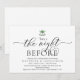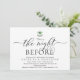 Moderne Romantische Kalligraphie, Schwarz-Weiß-Schema, Mistletoe mit Hochzeitsglocken, Einladungskarte für das Hochzeitsessen der Probe (mit Kartentitel: 'Das war die Nacht zuvor). Es ist ideal für Ihre Hochzeit Probe Dinner feiern Party, bevor Sie Ihren besten Tag. Fügen Sie Ihre Daten in passender schwarzer Schriftart / Schrift hinzu. #TeeshaDerrick