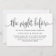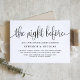 Feiern wir Braut und Bräutigam vor der Hochzeit. Mit dieser eleganten Probe-Dinner-Einladung laden Sie Familie und Freunde ein. Es zeichnet sich durch Kalligraphie mit klassischer Typografie aus. Personalisieren Sie diese durch Hinzufügen von Namen, Datum, Adresse und anderen Details. Dieses Skript The Night Before Einladung ist perfekt für jede Hochzeit und Thema.