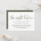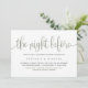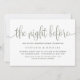 Set den Ton für einen unvergesslichen Abend mit unserer individualisierbaren Probe Dinner Invitation, mit der eleganten Phrase "The Night Before" in whimsical Skript. Dieses elegante Abendessen mit Probe ist so konzipiert, dass es die Begeisterung der Nacht vor dem großen Tag einfängt. Ob Sie eine kleine, intime Ansammlung oder eine größere Feier veranstalten, diese Hochzeitsfeier ist die ideale Probe, um Ihre nächsten Freunde und Familienmitglieder einzuladen. Personalisieren Sie die Einladung mit Ihren Veranstaltungsdetails, einschließlich Datum, Uhrzeit und Ort.