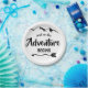 Das Abenteuer fängt mit der Trendpapierplatte an. Unser handgefertigter Berg mit modernen Schriftart und unser handgefertigter Pfeil umgeben das positive Zitat "und so beginnt das Abenteuer". Sie können die Hintergrundfarbe anpassen.