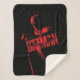 Rote stilisierte Grafik von Batman, der sein Kap mit dem theatralischen Logo von Batman oben hält.
