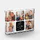 Modernes Foto Blockdisplay für Opa! Das Design umfasst eine Collage aus Foto, die aus 5 gewölbten quadratischen Bildern mit abgerundeten Kanten und einem farbigen Block besteht, der mit dem Text 'The World's Best Opa', einem niedlichen kleinen weißen Herz und Namen/s, in jede beliebige Farbe geändert werden kann.