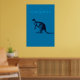 Die Blaue Kangaroo Moderne Wall Kunst mit dem Bild eines Kangaroo in schwarz vor einem farbenfrohen Hintergrund mit dem Wort "Kangaroo". Es sieht ausgezeichnet aus in jedem modernen Wohnzimmerdekor.