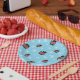 Dieses lustige Muster zeigt das Big Bang Theory Logo auf blauem Hintergrund.