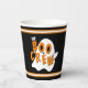 Schwarze Halloween-Geisterpapiertassen mit weißem Geist und orangefarbenem Text "die boo-Crew". Fügen Sie dies in Ihre Halloween-Party-Lieferliste ein. Geeignet für Kinder und Erwachsene.