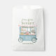 Fresh Off The Market Bauern Floral Brautparty Gefallen Taschen mit einem hübschen rosa und blauen Farmer's Market cart voll von rosa Rosen und anderen schönen frischen Waren!
