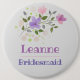 Die Bridesmaid - ein Button-Abzeichen mit dem Namen und einer Blumenillustrierung. Abzeichen zur Identifizierung von Hochzeiten.