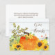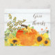 Rustikale Herbstkarte mit Aquarellkürbis, Sonnenblumen und der Phrase "Give Danke". Ideal für Erntedank, Herbst-Ansammlungen oder für das Senden von saisonalen Dankbarkeit. Ein gemütliches Bauernhaus-inspiriert Design für Familien, Freunde oder Herbergen Notizen. Mit nur wenigen Klicks personalisieren Sie die Rückseite der Karte einfach.