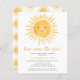 Freuen Sie sich auf die niedliche, preisgünstige Babydusche und die sonnengefleckte Babydusche. Es enthält den Text "Here Comes The Sun" in stilvoller Typografie mit einer zauberhaften, gelben Aquarellsonne. Der Rücken ist mit einem sonnigen Muster dekoriert. Einfach anpassbar. Weil wir unsere Kunstwerke erstellen, werden Sie dieses exakte Bild von anderen Designern nicht finden. Original Wasserfarbe © Michele Davies.