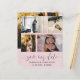 Niedlich rettete unsere Terminankündigung. Diese Vorlage bietet Platz für 4 Ihrer Lieblings-Paare-Fotos in Weiß mit cooler handgeschriebener Kalligraphie in dunkelgrau. Einfach mit Ihren eigenen, einzigartigen Details bearbeiten.
