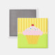 Der Cupcake-Magnet zeigt einen köstlichen Kuchen und einen schönen, grünen Kalkboden mit gelben Elementen.
