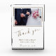 Ein Bevorzugungshochzeits-Fotoblock mit einem personalizable Hochzeits-Foto, Namen und Hochzeit datieren. Ein elegantes und ein stilvolles danken Ihnen der Fotoblock -, der als Geschenk für Ihre Gäste groß ist. Danke" in einem modernen Skript-Schriftart und Gewohnheit danken Ihnen Mitteilung. Fügen Sie Ihr Lieblingshochzeits-Foto in die Schablone hinzu.