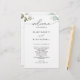 Elegantes Hochzeitsprogramm mit schönen handgeschriebenen Kalligrafieelementen und zarten Eukalyptus-Details. Möglichkeit, Textänderungen und Anpassungen durch Auswahl weiterer Anpassungen vorzunehmen. Front mit den Details der Hochzeitsfeier, zurück mit den Namen der Hochzeitsfeier und danke Ihnen für die Nachricht für Ihre Gäste. Elegantes modernes, minimalistisches Ambiente. Teil unserer "Minimal and Graceful Eukalyptus Wedding" Kollektion mit einer Vielzahl von Produkten zur Koordination, einschließlich Hochzeitssignatur, Sitzkarten, Menü, Tischnummern und vieles mehr.