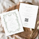 Planen Sie Ihre Traumhochzeit erschwinglich mit einer preisgünstigen All-in-One-Viktorianisch-inspiriert grünen Hochzeitseinladung mit QR-Code. Dieses elegante Design besticht durch den Charme der Viktorianischen Epoche. Freuen Sie sich auf eine aufwändige Dekoration und eine sanfte grüne Farbe. Das All-in-One-Format sorgt für Bequemlichkeit und Kosteneffizienz, während der QR-Code den Gästen einen einfachen Zugriff auf RSVPs und Veranstaltungsdetails ermöglicht. Ideal für Paare, die nach Stil und Funktionalität suchen, ohne dabei auf Raffinesse oder ihr Budget zu verzichten.