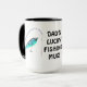 Das glückliche Fischen des Vaters trägt Tasse zur