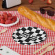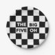 Holen Sie sich Ihre Party-Vorräte zusammen, um eine 50. Geburtstagsfeier oder ein 50-jähriges Jubiläum zu feiern, mit Tellern in Papierform, die mit einem kühnen Schwarz-Weiß-Schachbrettmuster mit den Worten "The Big Five Oh" im abwechselnden Weiß auf Schwarz und Schwarz auf Weiß zeigen. Copyright ©Claire E. Skinner. Alle Rechte vorbehalten.