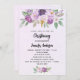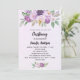 Ein violetter, lavendigerer, wasserfarbener Hintergrund. Die Einrichtung ist mit violetten und lila Blume und Grünpflanzen sowie einem goldenen Kreuz gestaltet. Personalisieren und fügen Sie einen Namen und Empfang Details hinzu.
