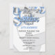 Diese Party Einladung zum Thema Volleyball für ein Teamfest ist mit hellblauen und grauen Volleyballfarben versehen, die auf der Vorderseite die Oberkante betonen und die Rückseite der Einladung bedecken - ein abstrakt überdimensionaler Volleyball mit hellgrauen und weißen Paneelen bildet den Hintergrund für Ihre Party-Details auf der Kartenvorderseite - von katz_d_zynes