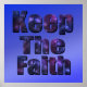 Auf blauem Gradientenhintergrund abgebildet ist ein inspirierender behalt des Glaubenslogos aus invertierten nebeligen Wolken