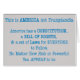 In blauem Text steht: "Das ist Amerika, nicht Trumplandia. Amerika verfügt über eine Verfassung, eine Grundrechtecharta und ein Set von Gesetzen, dem jeder folgen kann, egal wie reich oder mächtig man zu sein scheint."