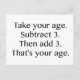Nimm dein Alter! Stoff 3. Dann 3 hinzufügen. Das ist dein Alter.