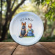 Baby Shower Papier Teller. Niedlicher Junge in Aquarellbändern, der neben einem deutschen Schäferhund sitzt. Ein großer kleiner Sake, um jedem Familienmitglied ein besonderes Gefühl zu geben.