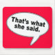 Das ist, was sie Gesprächs-Blasen-T-Shirts sagte Mousepad
