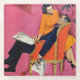 Künstler:Morgan Kane | Ein Mann sitzt in einem hellen roten Stuhl und liest die Zeitung, und eine Frau sitzt auf dem Arm