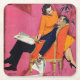 Künstler:Morgan Kane | Ein Mann sitzt in einem hellen roten Stuhl und liest die Zeitung, und eine Frau sitzt auf dem Arm