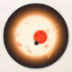 Das künstlerische Konzept des Kepler-16-Systems, das den binären Stern zeigt, der von Kepler-16b umschrieben wird. Kepler-16 umkreist einen langsam rotierenden K-Zwerg, der mit zahlreichen Sternpunkten sehr aktiv ist. Sein anderer Elternstar ist ein kleiner roter Zwerg. Das planetarische Flugzeug ist innerhalb eines halben Grades des stellaren binären Orbital-Flugzeug ausgerichtet.