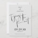 Mit diesem stilvollen Design mit handschriftlicher Schrift "The Knot across the centre" laden Sie Ihre Gäste ein, Ihren Hochzeitstag retten. Das Wort "und" zwischen Ihren Namen befindet sich in einem passenden Set-Skript. Die Erholung des Textes kann leicht personalisiert werden, schwarz auf hellgrauem Hintergrund mit dunkelgrauem Hintergrund auf der Rückseite. Sie können Text- und Hintergrundfarben ändern, um Ihr Hochzeitsfarbschema besser zu Anzug, wenn Sie möchten, indem Sie über die weitere Option anpassen.