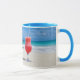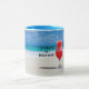 "Das Leben beginnt bei der Pension", frostiges Getränk am Strand, Kaffee-Tasse.