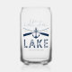 Personalisiertes Seehaus mit dem lustigen Sprichwort "Leben ist besser am See", Bootsbahnen, Anker, Familienname und Jahr etabliert.