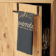 Küchenhandtuch mit goldfarbener Abbildung auf schwarz-grauem Hintergrund. Entworfen mit einer Abbildung eines Berges, in dem die Sonnenstrahlen von hinten leuchten. Typografie sagt: Das Leben ist ein Erlebniserlebnis Traumwelt entdecken.