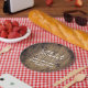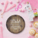 Rustikaler RV-Campingsthema-Papier-Teller für das Ruhestands-Party, rvers, etc., die personalisiert sind, beunruhigte hölzernen Blick. Liest "das Leben ist eine Reise genießen die Fahrt", in handgeschriebenem und gestempeltem Blick, weiße Buchstaben. Mit einem niedlichen weiße Grenze unten Vintager RV-Camper und der Kiefernbäume. Liest "Glückwünsche" mit personalisiertem Namen an der Unterseite. Gegen einen braunen Hintergrund der rustikalen, beunruhigten hölzernen Planken der Scheune mit verdunkelten Rändern. Spaßruhestandsdekor für Mitarbeiter oder für Mamma- und Vatiruhestand wagen. Zusammenpassende RV-Campingspapierservietten und rustikaler hölzerner Partydekor in unserem Zazzle.com/angela65 kaufen.