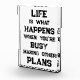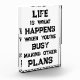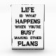 "Das Leben ist das, was passiert, wenn man beschäftigt ist, andere Pläne zu machen" lustige motivierend Zitat. Eine mächtige Erinnerung, dass wir alle möglichen Ziele und Ambitionen für die Zukunft schaffen können, aber wenn wir eine starke Zukunftsorientierung haben, können wir vergessen, in der Zwischenzeit in vollem Umfang zu leben.