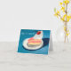 Süß, fröhlich und voller Charme zeigt diese Grußkarte ein originales Acryl-Gemälde einer leckeren Scheibe Erdbeertorte, belegt mit Schlagsahne und einer hellroten Kirsche. Vor einem lebendigen blauen Hintergrund sitzt das Dessert auf einem klassischen weißen Teller und schafft ein spielerisches Stillleben, das sich sowohl nostalgisch als auch unterhaltsam anfühlt.