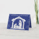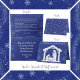 Christliche Weihnachtskarte mit dem Titel "Gottes bestes Geschenk..Das Licht der Welt." Die manger Silhouette in Silber auf einem Mitternacht blauen und silbernen Hintergrund mit Versen aus Luke 2 über die Geburt von Jesus.