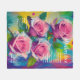 Das farbenfrohe Ölgemälde von schönen rosa Rosen auf einem schönen, farbenfrohen Hintergrund. Personalisiert mit dem/den Namen(en) der Spender in der unteren Ecke.
