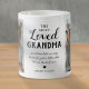 Stilvolle Kaffee-Tasse für Großmutter mit dem niedlichen Sprichwort "die beliebteste Oma", 2 Fotos der Enkelkinder, einem Herz, ihren Namen und der Beschriftung "Großmütter halten nur eine Weile unsere kleinen Hände, aber unsere Herzen für immer".