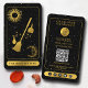 Eine wunderschöne schwarz-goldene himmlische Tarot- und Mondkarte. Eine einfache und berufliche Art, Ihr Unternehmen vorzustellen. Passen Sie das Firmenlogo und den QR Code an und erstellen Sie Ihre eigene Visitenkarte. In dieser Visitenkarte enthaltene Symbole der sozialen Medien. Ideal für Reinigungsservice, Zimmermädchen, Hausreinigung, Hausmeisterservice, Hausmeisterservice und Hausreinigung.