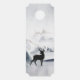 Ein Türhänger mit Aquarellbild mit einem Rentier aus schwarzer Silhouette, der unter einigen Kiefern stehend ist. Graues Schwarz-Weiß-Farbschema mit neutraler Farbe.