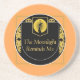 Runder Sandstein Untersetzer mit einem Vintagen, in den 20er Jahren schwarz und orange verzierten Rahmen und einem Art-Déco-Weibchen, das in hellgelber Helligkeit eines Vollmonds silhouiert ist. Optionaler Text Der Titel "The Moonlight Reminds Me" ist ein Lied, das 1929 von Gus Kahn geschrieben wurde. In den 1920er Jahren leistete Kahn weiterhin Beiträge zu den Broadway-Partituren wie "Holka Polka" (1925), "Kitty's Kisses" (1926), "Artists and Models" (1927), "Whoopee!" (1928) und "Show Girl" (1929). Siehe dazu passender Untersetzer aus Kunststoff, Untersetzer und Servietten. Sehen Sie sich die gesamte Roaring 20s Untersetzer-Kollektion im NAHRUNGSMITTEL/BEV an | Abschnitt "Untersetzer".