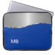Monogrammlaptophülse mit modernem männlichem Entwurf, der eine silberne metallische Blickentwurfselement- und -hintergrunddruckfarbe Sie umfaßt, kann zusammen mit Monogramraum ändern, den Sie mit Ihrem Namen oder Mitteilung personifizieren können. Entwurf schützt Ihre tragbare Elektronik wie Ihr netbook oder Laptop in der Art und macht es Ihre Selbst. Entworfen für Typen, Jugendjungen oder Männer die wie männliche Entwürfe.